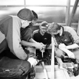 Once the plans for the cabin were ready we helped out the experts as much as possible. From polishing the raw cabin construction to painting it, mounting the outer shell, adjusting the floor and lots of other things.