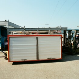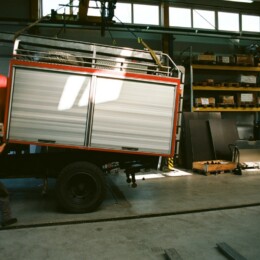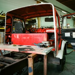 Almost done with the interior we drove the cabin back up to Lagermax where we finished all the electronic „things“, painted/primed the cabin, mounted a skibox, the reserve wheel on the front, a Dometic generator underneath the cabin and and and….