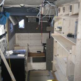 We mounted a few wooden constructions on top of the Armaflex insulation where we attached all the furniture. This way we eliminated any dew points in the inside of the cabin. All the gaps between the metal construction got insulated with Austrian sheep wool.